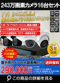 同軸防犯カメラセット おすすめ 防犯カメラ 家庭用 屋外防水同軸カメラ16台+録画機 スマホ監視対応 長さを選べるケーブル。同軸で使える大手有名メーカー製243万画素TVIカメラセットです。