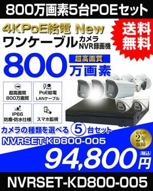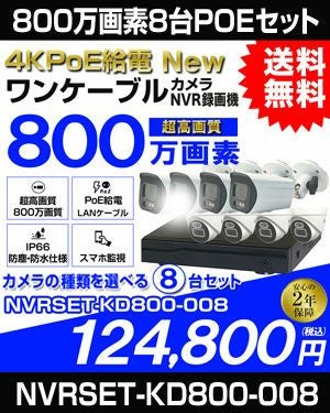 防犯カメラを1台~4台まで台数で選ぶ 屋外 防水 AI人体検知 広角 ネットワークカメラ 1~4台セット 800万画素 POE LANケーブル マイク付き カメラ音声 スマホ対応 1TB 常時録画 パソコン遠隔監視対応 動体検知録画 防犯カメラセット LANケーブル20m付き NVRSET-KD800-014
