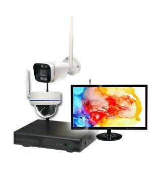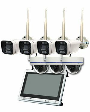 電源接続だけで無線で使えるワイヤレス防犯カメラセットです。安価な一般家庭向けモデルがメインです。レコーダーにモニターが一体型のセットもございます。