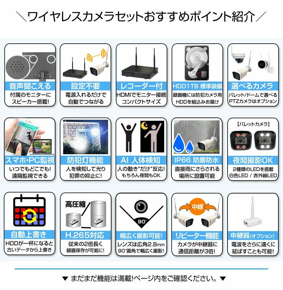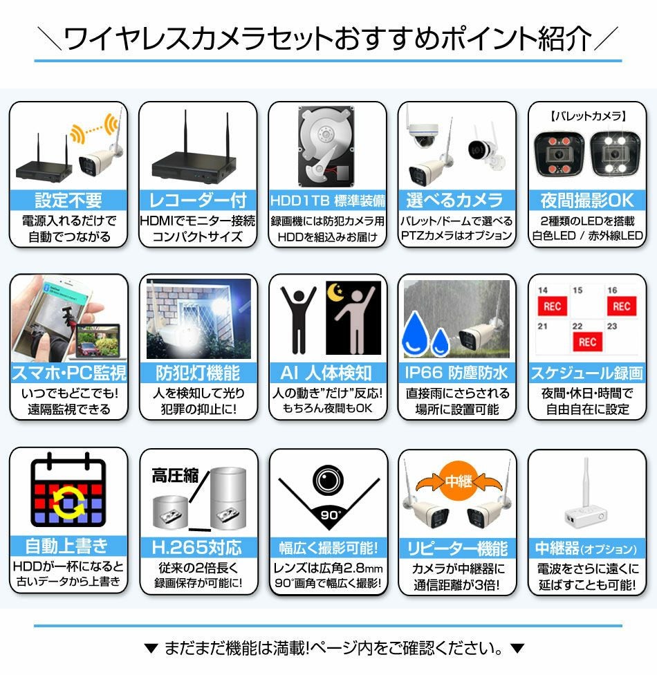 防犯カメラ 秋葉原 屋外 録画機能付き 防水 カメラ1台~8台セット ワイヤレス 300万画素 モニターレス バレット・ドーム・カメラが選べる マイク付き カメラ音声 パソコン遠隔監視対応 工事不要 防犯カメラセット AI人体検知 ALWSET-KG300KD2-018