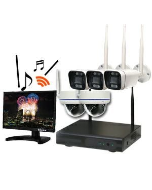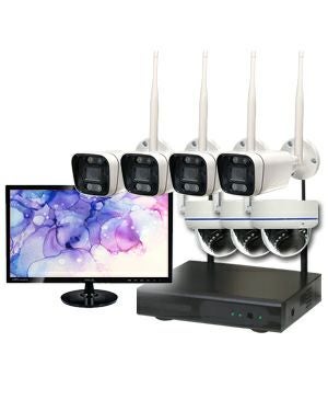 ワイヤレス防犯カメラセット おすすめ 防犯カメラ 家庭用 屋外防水ワイヤレスカメラ4台+15インチモニター一体型録画機 スマホ監視対応 無線で使える300万画素ワイヤレスカメラセットです。