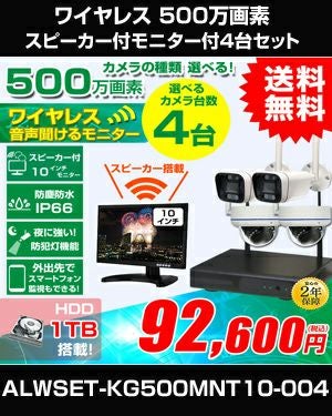 防犯カメラ 屋外 音声聞こえる!スピーカー内蔵10インチ モニター付き 録画機 レコーダー付き 防水 カメラ選べる 1~8台セット ワイヤレス 300万画素 ディスプレイ バレット・ドーム・カメラが選べる マイク付き カメラ音声 パソコン遠隔監視対応 工事不要 防犯カメラセット AI人体検知 ALWSET-KG300MNT10-018
