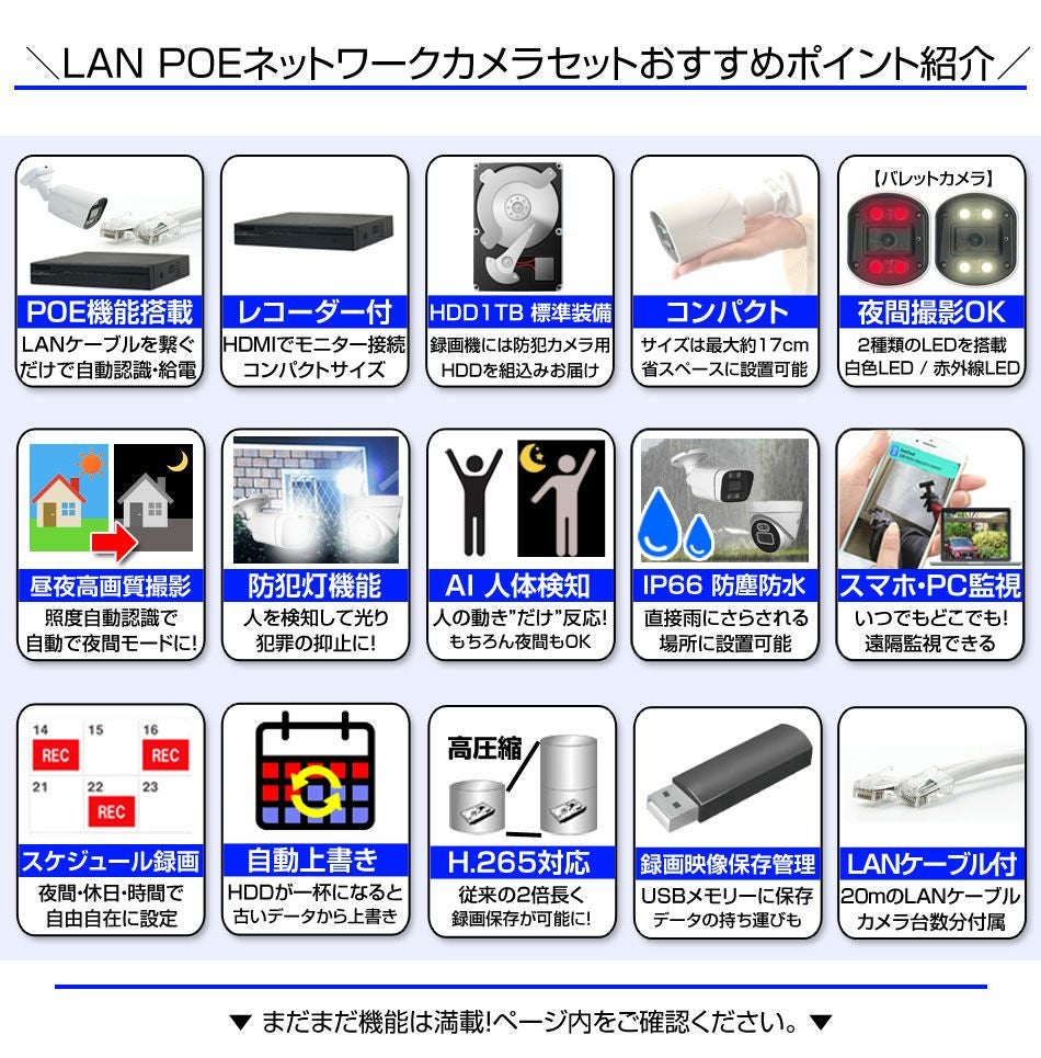 【スペシャルセット】 ネットワークカメラ2台セット POE機能でLANケーブルから電源供給可能!おすすめ 家庭用 屋外防水ネットワークカメラ2台+録画機 スマホ監視対応 防犯カメラ 屋外 防水 AI人体検知 初心者用 コスパ抜群 ネットワークカメラ 2台セット 800万画素 POE LANケーブル マイク付き カメラ音声 スマホ対応 1TB 常時録画 パソコン遠隔監視対応 動体検知録画 防犯カメラセット LANケーブル20m付き NVRSET-JPKD800-002
