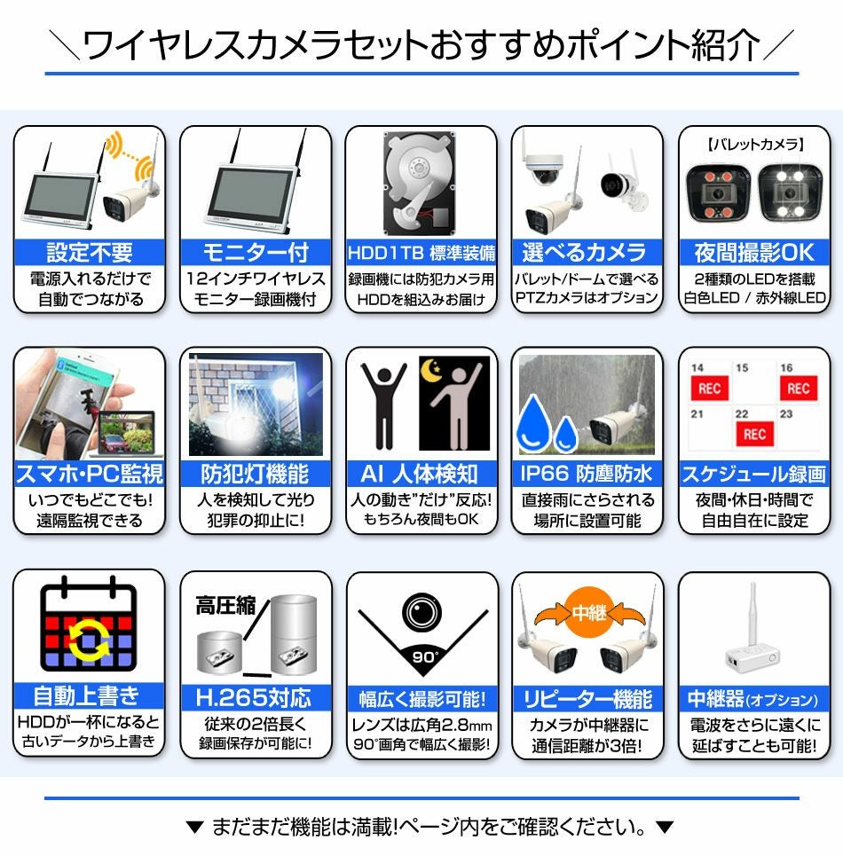 防犯カメラ 秋葉原 屋外 録画機能付き 防水 カメラ1~8台セット ワイヤレス 300万画素 マイク付き カメラ音声 10インチ液晶モニター付き 人体検知 パソコン遠隔監視対応 バレット・ドーム・カメラが選べる 工事不要 防犯カメラセットALWSET-YG300-018