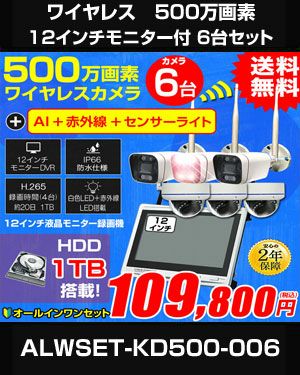 防犯カメラ ワイヤレス 無線 屋外 録画機能付き 防水 防犯カメラ1~8台セット 500万画素 12インチ液晶モニター付き 左右に動かせるカメラ マイク付き カメラ音声 工事不要 防犯カメラセット ALWSET-KD500-018