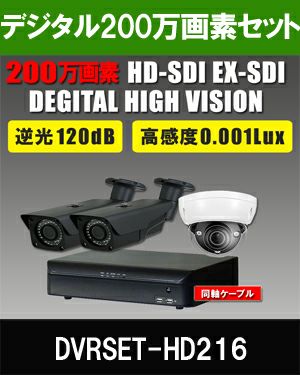 防犯カメラ 屋外 録画機能付き 防水 逆光補正 デジタル 防犯カメラ 1台セット EXSDI/HD-SDI 200万画素 デジタル画質バレット・ドーム・カメラが選べる 業務用 常時録画 動体検知録画 DVRSET-HD031