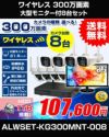 【家庭用防犯カメラ 無線・ワイヤレスカメラ】21.5インチモニター付き 300万画素ハイビジョンワイヤレスカメラ カメラ選べる8台セット!画質で選ぶ!ワイヤレスカメラ録画機セット ALWSET-KG300MNT-008