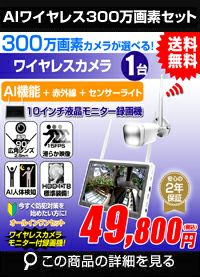 防犯カメラ 屋外 秋葉原 録画機能付き 防水 カメラ1台セット ワイヤレス 300万画素 マイク付き カメラ音声 10インチ液晶モニター付き 据え置き 壁掛け 人体検知 人感センサー ライト パソコン遠隔監視対応 バレット・ドーム・カメラが選べる 工事不要 防犯カメラセット ALWSET-300SMNT10-001のレビューを書く