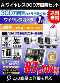 防犯カメラ 屋外 秋葉原 録画機能付き 防水 カメラ7台セット ワイヤレス 300万画素 マイク付き カメラ音声 10インチ液晶モニター付き 据え置き 壁掛け 人体検知 人感センサー ライト パソコン遠隔監視対応 バレット・ドーム・カメラが選べる 工事不要 防犯カメラセット ALWSET-300SMNT10-007のレビューを書く
