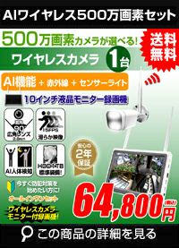 防犯カメラ 屋外 秋葉原 録画機能付き 防水 カメラ1台セット ワイヤレス 500万画素 マイク付き カメラ音声 10インチ液晶モニター付き 据え置き 壁掛け 人体検知 人感センサー ライト パソコン遠隔監視対応 バレット・ドーム・カメラが選べる 工事不要 防犯カメラセット ALWSET-500SMNT10-001のレビューを書く