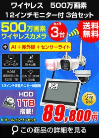 防犯カメラ カメラ3台セット 屋外 録画機能付き AI人体検知 人感センサー ライト 屋外用 防水 ワイヤレス 500万画素 12インチ液晶モニター付き マイク付き カメラ音声 工事不要 防犯カメラセット ALWSET-KD500-003のレビューを書く