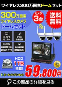 防犯カメラ AI機能 屋外 屋内 秋葉原 ドームカメラ3台セット ワイヤレス 300万画素 録画機能付き HDD(1~4TB選択可) 防水 マイク付き カメラ音声 10インチ液晶モニター付き 人体検知 パソコン遠隔監視対応 ドームカメラ 工事不要 防犯カメラセット ALWSET-YGD300-003のレビューを書く
