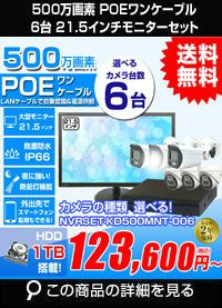 防犯カメラ 6台セット 屋外 21.5インチモニターセット 録画機付き AI人体検知 人感センサー ライト 防水 広角 ネットワークカメラ 500万画素 POE LANケーブル マイク付き スマホ対応 1TB 常時録画 パソコン遠隔監視対応 動体検知録画 防犯カメラセット カメラが選べる LANケーブル20m 6本付き NVRSET-KD500MNT-006のレビューを書く