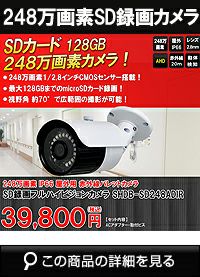 テレビで映像確認ができる! SDカード 防犯カメラ 屋外 248万画素 赤外線 バレットカメラ 広角 SHDBF-SD248ADIRのレビューを書く