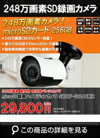 工事不要 防犯カメラ 屋外 録画機能付き BNC/RCA端子で映像確認 SDカード 防犯カメラ 248万画素 赤外線 バレットカメラ 広角レンズSHDBF-SD248MIRのレビューを書く