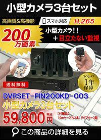 防犯カメラセット 屋内 家庭用 小型カメラ3台セット 6in1 HD-SDI EX-SDI AHD TVI CVI CVBS 200万画素 小型ピンホールカメラ 常時録画 動体検知録画 DVRSET-PIN200KD-003のレビュー